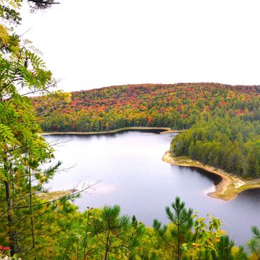 Discover the majestic beauty of the fall leaves in the hardwood forest from high above at the Scorch Lake Lookout